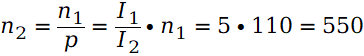 Zastosuj definicję przekładni transformatora w postaci , zastępując p na iloraz I2 i I1 (ułamek się odwróci, gdyż p jest w mianowniku).