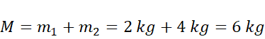 Oblicz masę układu zauważając, że klocki są połączone. Oblicz wartość siły wypadkowej. Oblicz, ile wyniesie przyspieszenie dla wartości tej siły. Zwrot siły wypadkowej nie ma znaczenia dla wartości przyspieszenia, jedynie dla zwrotu wektora.