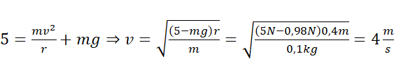 Na dole pętli działająca na kulkę siła wypadkowa nie może być większa niż 5 N by nić się nie zerwała. Zatem suma siły grawitacji i siły bezwładności musi być równa 5 N. Siła bezwładności pełni rolę siły odśrodkowej. Siła odśrodkowa jest stała w całym czasie trwania ruchu: wartość prędkości jest stała.