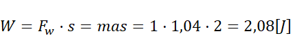 2. Praca wykonana przez wypadkową siłę wynosi około 4 J. – F