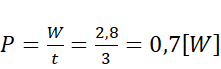 3. Moc średnia wynosi około 0,7 W. – P