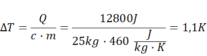 Energia wydzielona przez uderzenie młota to energia kinetyczna. 80% tej energii to ciepło zużyte na ogrzanie płyty. Podstawiamy tę wartość oraz dane z polecenia do wzoru na ciepło potrzebne do ogrzania ciała i otrzymujemy rozwiązanie.