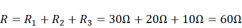 Połączenie szeregowe oporników. Natężenie jest stałe: