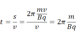 Gdy w pole magnetyczne wpada cząstka z pewną prędkością, to zaczyna na nią działać siła Lorentza, uginając jej tor ruchu. Siła Lorentza pełni w tym ruchu rolę siły dośrodkowej. Prędkość cząstki co do wartości pozostaje niezmienna. Oblicz promień, po którym porusza się cząstka. Będąc w polu magnetycznym, zatoczy ona półkole. Współrzędna x będzie więc taka sama jak przy wejściu w pole, a współrzędna y będzie średnicą okręgu ruchu. Oblicz drogę jako połowę długości okręgu oraz czas, jako iloraz przebytej drogi i prędkości n niej.