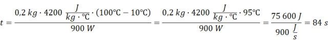 Wyznacz czas pracy czajnika elektrycznego o mocy 900 W, aby można było zagotować 200 g wody o temperaturze początkowej 10°C. Następnie określ cenę energii elektrycznej, jeśli koszt wynosi 80