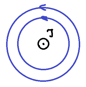 Igła magnetyczna wskazuje zwrot linii pola, które według zasady prawej dłoni wskazują kierunek przepływu prądu w prostoliniowym przewodniku.