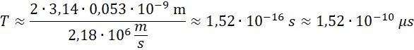 Na podstawie danych przedstawionych w treści zadania oblicz okres obiegu jądra przez elektron.
