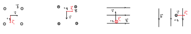 W tym zadaniu należy zaznaczyć kierunek i zwrot siły Lorentza działającej na cząstkę.