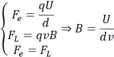 Aby cząstka mogła opuścić selektor, musi poruszać się ruchem prostoliniowym, zatem siła elektryczna pola płytek kondensatora musi się zrównoważyć z siłą Lorentza: