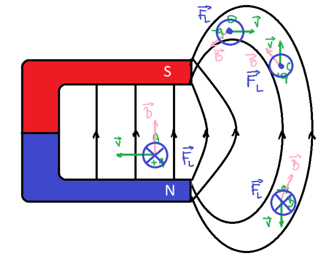 Siłę Lorentza znajdziesz, korzystając z reguły lewej dłoni. Dodatkowo na uwadze miej, że każdą z podanych prędkości na rysunku można rozłożyć na składowe.