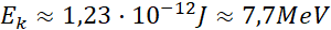 W celu wyznaczenia wartości energii kinetycznej posiłkuję się wyznaczonym wzorem na prędkość z powyższego układu równań, który wywodzi się z równoważności siły dośrodkowej i siły Lorentza oraz klasycznym wzorem na energię kinetyczną.