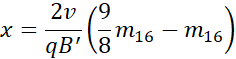Z treści znam stosunek mas, zatem mogę uzależnić jedną masę od drugiej, a następnie wstawić do równości, która wynika z rysunku i otrzymuję w ten sposób masy obu izotopów.