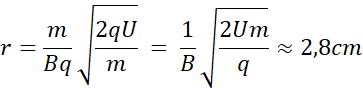 W sytuacji tej praca elektrycznego pola pochodzącego od napięcia przemieniana jest w energię kinetyczną – wszak to właśnie napięcie pozwala nabrać elektronowi prędkości, z porównania tych zależności wyliczyć możesz prędkość. Następnie z wiadomości, że siła Lorentza pełni rolę siły dośrodkowej, wyznacz promień.