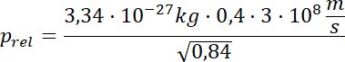 Po znalezieniu prędkości cząstki możemy obliczyć jej pęd ze wzoru na pęd relatywistyczny. Po obliczeniu go, podstawimy wartości do wzoru wyprowadzonego w podpunkcie b. W ten sposób otrzymujemy odpowiedź na to zagadnienie.
