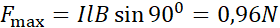 W celu znalezienia odpowiedzi należy dokonać obliczeń – natężenie wylicz z definicji siły elektromotorycznej, tak samo maksymalną siłę (pod kątem prostym wektorów w iloczynie wektorowym).