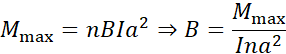 Ze względu na to, że ramka ma dwa boki, działa na nią parzysty elementarny moment sił, całkowity moment sił jest elementarnym momentem pomnożonym przez n – liczbę zwojów, moment sił z definicji jest równy iloczynowi siły, ramienia i sinusa kąta między wektorem siły i ramieniem. Maksymalny moment sił istnieje, gdy powyżej wspomniany kąt jest równy kątowi prostemu. Siła działająca na ramkę będzie siłą elektrodynamiczną a ramię siły to połowa długości boku kwadratowej ramki. Łącząc to wszystko i przekształcając równanie, otrzymuję zależność opisującą wartość wektora indukcji magnetycznej.