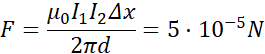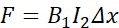 Każdy z przewodników wytwarza pole magnetyczne, aby znaleźć, jaką siłą przewodnik pierwszy działa na drugi, muszę określić indukcję pola, które wytwarza pierwszy przewodnik z prądem (korzystając z definicji indukcji pola magnetycznego prostoliniowego przewodnika z prądem) i pomnożyć je przez długość oraz natężenie drugiego przewodnika – czyli skorzystać z definicji siły elektrodynamicznej.
