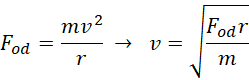 Zapisujemy pierwszą zasadę dynamiki w najwyższym punkcie. Korzystamy z założenia podanego w treści zadania. Prędkość liniową obliczamy poprzez skorzystanie z przekształconego wzoru na siłę odśrodkową.