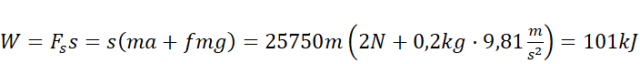 Oblicz przyspieszenie samochodu jako iloraz kwadratu prędkości i dwukrotności drogi. Następnie zapisz dynamiczne równanie ruchu, opisujące siły działające na ciało, powodujące jego ruch, aby uwzględnić działające na samochód siły. Oblicz pracę jako iloczyn siły silnika i drogi przebytej.