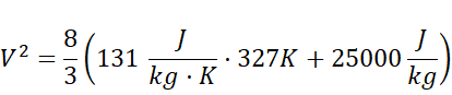 Energia kinetyczna to energia poruszającej się bryły ołowiu. Przy założeniu, że 75% tej energii idzie na ogrzanie i stopienie ołowiu, możemy ułożyć równanie wykorzystujące wszystkie dane, z V2 jako niewiadomą.