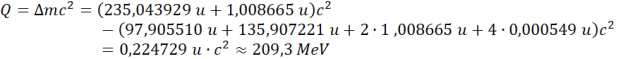 W tym zadaniu musisz wyznaczyć energię wydzieloną podczas rozpadu jądra uranu.