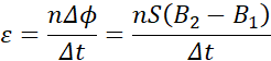 Z definicji wyznaczam strumień indukcji magnetycznej dla wartości indukcji pola określonych jako dane. Ich różnica przemnożona przez liczbę zwojów i podzielona przez zmianę czasu będzie średnią SEM indukcji cewki.