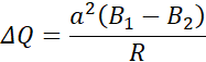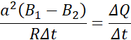 Kiedy zajmuję się galwanometrem, muszę ograniczyć się do jednej kwadratowej ramki, tak więc (n = 1). Korzystam z reprezentacji natężenia z prawa Ohma, które ma w użyciu SEM indukcji jednej ramki, a to znowu przedstawiam, modyfikując SEM indukcji całej cewki o n = 1. Natężenie przedstawiam również z definicji jako iloraz zmiany ładunku i czasu. Porównuję obydwie reprezentacje i wyznaczam zmianę ładunku.