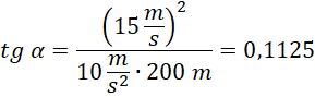 Wiedząc, że kierowca wjeżdża w zakręt o promieniu 200 m z prędkością 54 km/h oblicz kąt, o jaki od pionu odchyli się powieszona na lusterku maskotka.