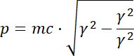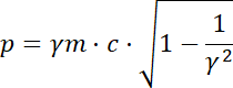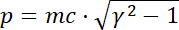 Podstawiamy wprowadzoną wartość do wzoru na pęd relatywistyczny: