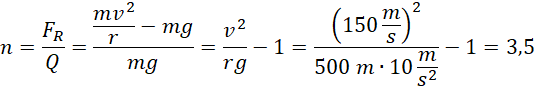 Na podstawie danych zawartych w treści zadania oblicz, jakich przeciążeń doznaje pilot w najniższym oraz najwyższym punkcie pętli.