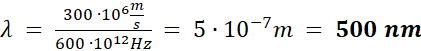 W tym zadaniu musisz obliczyć długość fali świetlnej w próżni o częstotliwości 600 THz, a następnie podać jaką barwę ma światła o tej długości fali w próżni.