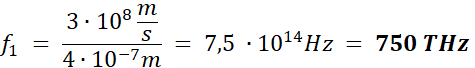 Zakres częstotliwości światła rejestrowanego przez wzrok przeciętnego człowieka to 750 THz – 375 THz.