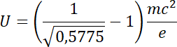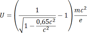 W pierwszym kroku musisz obliczyć napięcie, które przyspiesza proton do prędkości 0,65c, wykorzystując równość pracy pola elektrycznego i zmiany energii kinetycznej protonu. Podstaw wyrażenia dla pracy i energii kinetycznej oraz dane prędkości i ładunku. Ostatecznie oblicz napięcie
