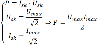 Moc prądu zapisuje się jako iloczyn napięcia i natężenia skutecznego oraz z definicji rozpisuje się te wartości składowe: