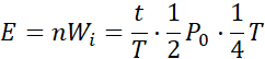 Określam n jako liczbę wykonanych cykli, czyli całkowity czas podzielony przez jeden okres, następnie korzystając z wykresu, obliczam pracę w jednym cyklu jako pole pod wykresem i aby uzyskać całkowitą energię, przemnażam tę pracę przez liczbę wykonanych cykli.
