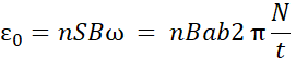 Przedstawiam częstotliwość jako liczba obrotów prądnicy podzielona na czas całkowity, częstość kołową jako