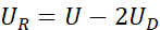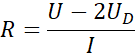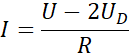 Spadek napięcia na oporniku to napięcie obwodu pomniejszone o napięcie na dwóch diodach.