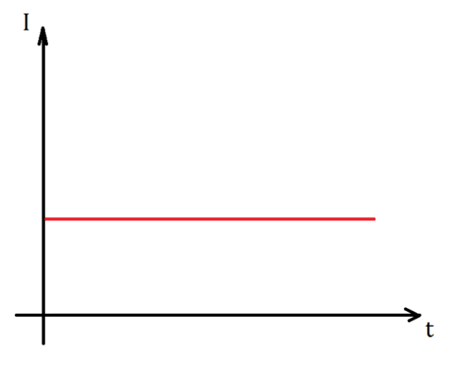 W obwodzie jest źródło prądu stałego i dioda w kierunku przewodzenia, zatem płynie prąd stały.
