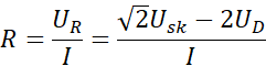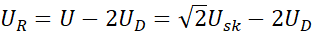 I korzystając z reprezentacji U wynikającej z powyższej definicji, zapisuję, że spadek napięcia na oporniku jest napięciem całego obwodu pomniejszonym o napięcie na dwóch diodach.