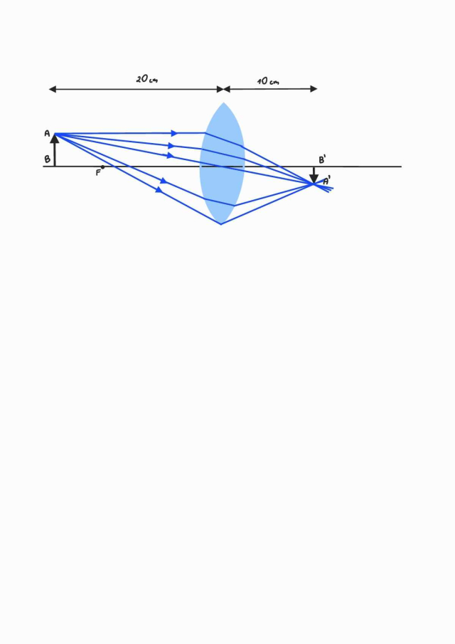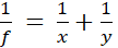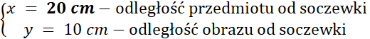 Ogniskową obliczamy z równania soczewki , gdzie f - ogniskowa, x - odległość przedmiotu od soczewki, y - odległość obrazu od soczewki.