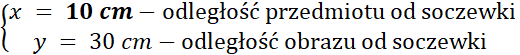 W tym zadaniu musisz obliczyć odległość między przedmiotem i soczewką, przy której odległość między przedmiotem i obrazem wynosi 40 cm oraz wartość ogniskowej soczewki i jej zdolności rozdzielczej, a następnie narysować schemat powstania tego obrazu.