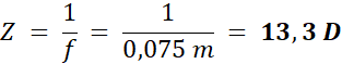 Ogniskową obliczamy z równania soczewki , gdzie f - ogniskowa, x - odległość przedmiotu od soczewki, y - odległość obrazu od soczewki. Natomiast zdolność rozdzielcza soczewki jest równa odwrotności ogniskowej.