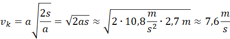 Korzystamy ze wzoru na prędkość końcową w ruchu jednostajnie przyspieszonym. Aby ją obliczyć, wyznaczamy wcześniej czas ruchu śrubki korzystając ze wzoru na drogę.