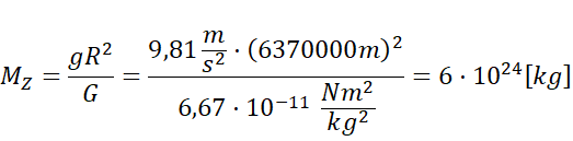 , które jest równością sił w polu centralnym i w polu jednorodnym i oblicz wartość masy Ziemi.
