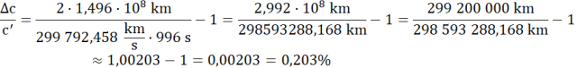 Wyznaczamy różnicę procentową wartości prędkości światła: