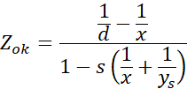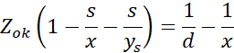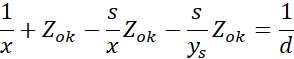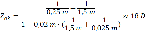 Równanie soczewki dla oka z okularami (widzącego prawidłowo):