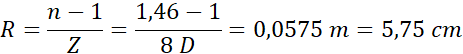 Zapisz równanie soczewki i wstaw wielkości odpowiadające danym przedstawionym w treści zadania. Następnie przekształć wzór do zależności na promień soczewki i wstaw dane liczbowe.