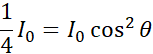 Odpowiedz, jaką wartość będzie miał kąt między kierunkami polaryzacji polaryzatorów, jeśli po przejściu przez pierwszy z nich natężenie ma wartości