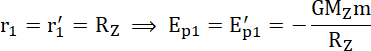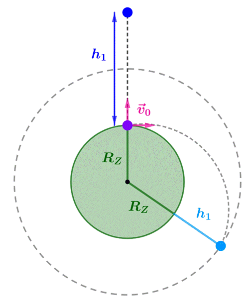 Zauważ, że na powierzchni planety mają one jednakową całkowitą energię mechaniczną. Ponieważ znajdują się w takiej samej odległości od powierzchni Ziemi, równej promieniowi Ziemi