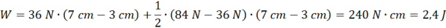Pracę możemy obliczyć jako iloczyn siły i drogi, więc obliczamy pracę jako pole powierzchni pod wykresem.